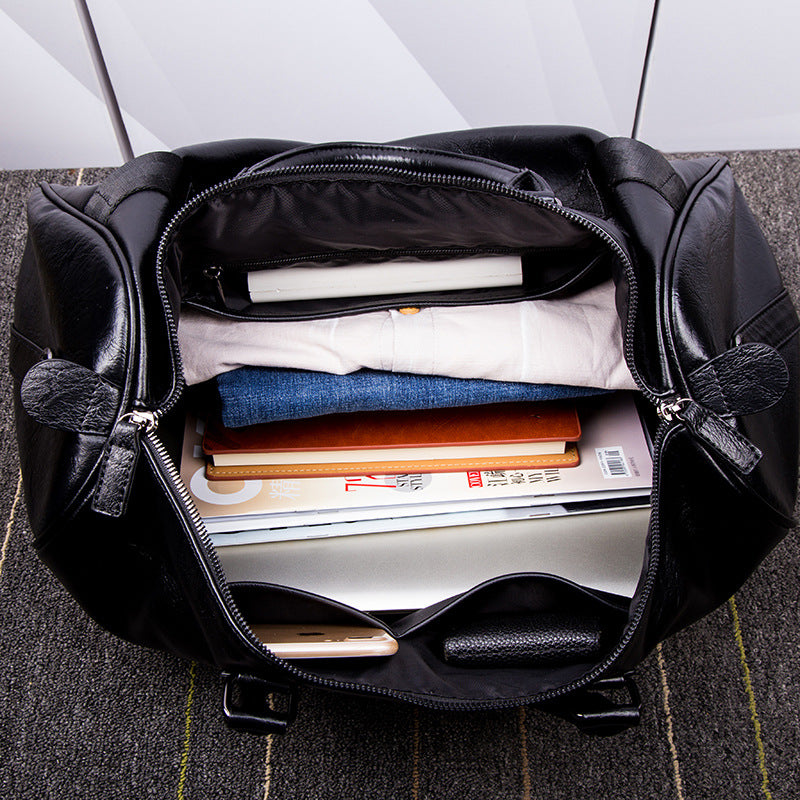 Normale prijs €55,00Deze zwarte stoere luxe leatherlook weekendtas is gemaakt van PU leer (PolyUrethaan Leer) wat zorgt dat de tas zeer duurzaam is.